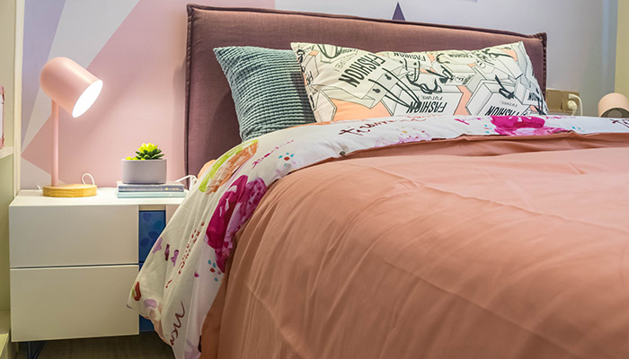 2、把床褥拉平,床垫对整齐。